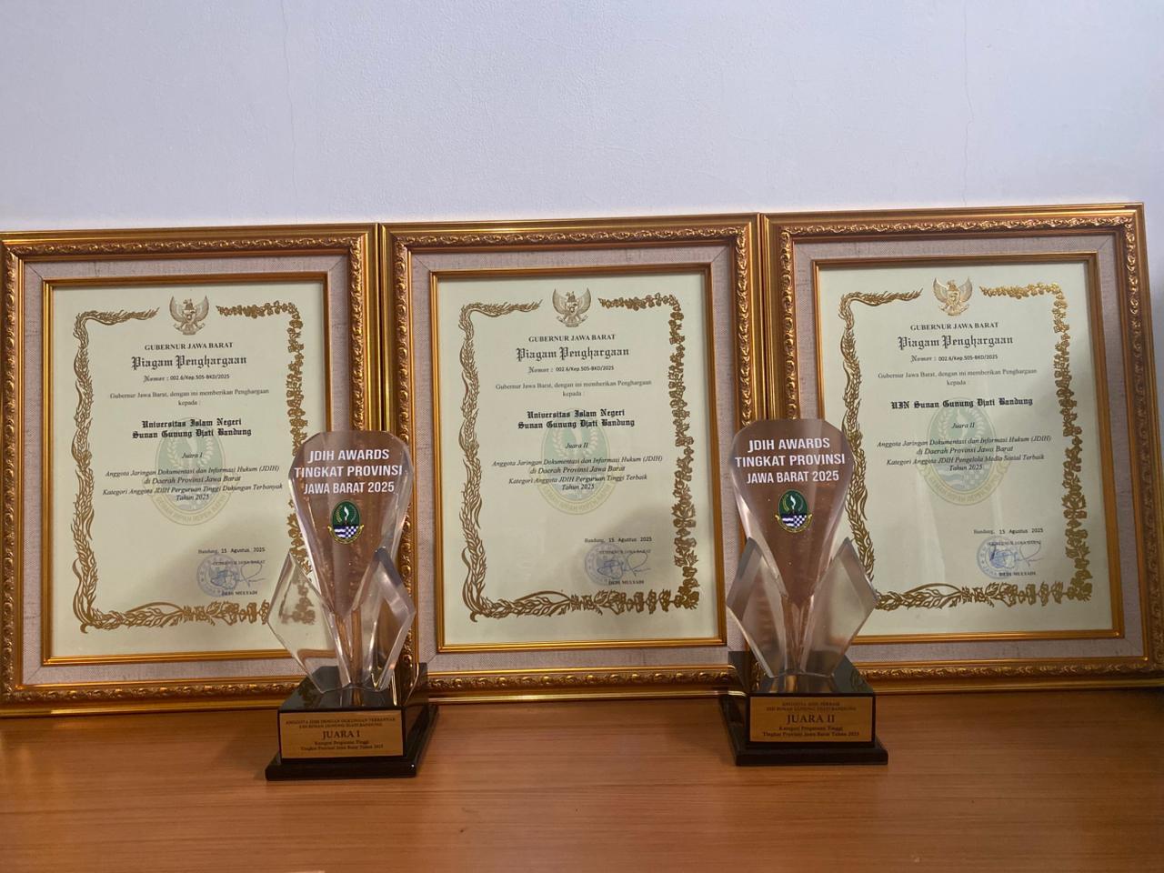 JDIH UIN Bandung berhasil meraih tiga penghargaan prestisius dalam ajang apresiasi JDIH tingkat Provinsi Jawa Barat Tahun 2025 dengan rincian sebagai berikut.