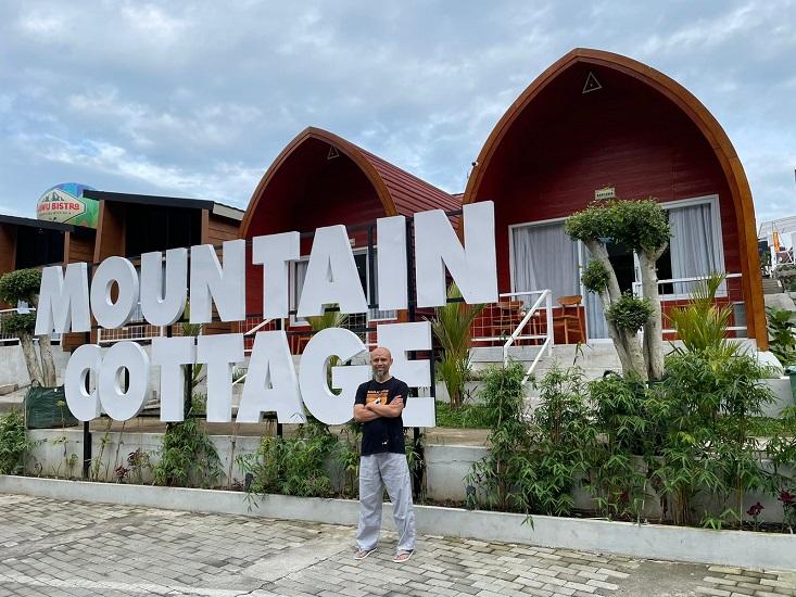 Salam dan sapa sambil memperkenalkan diri, senyum ramah orang tersebut sambil membungkukan badan tanda hormat. Saat itu tidak dipersilakan masuk ruangan, tetapi diajak keliling sekitar resto dan cafe, yang sudah berdiri bangunan untuk penginapan yang dikenal Cotage dan beberapa area lainnya.