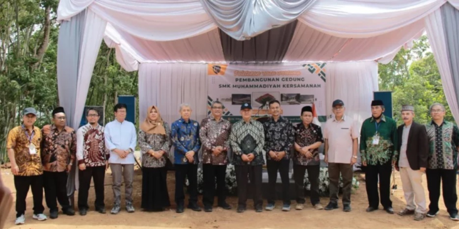 BANDUNGMU.COM, Garut — Pembangunan SMK Muhammadiyah Kersamanah, Garut, Jawa Barat, dilakukan secara keroyokan oleh Rektor Perguruan Tinggi Muhammadiyah (PTM).