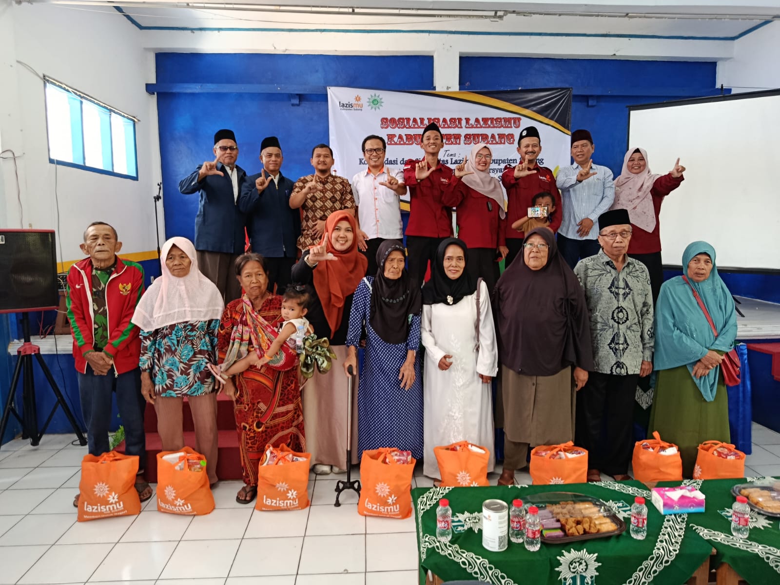 Dalam kesempatan tersebut, Badan Pengurus Lazismu Subang Ahmad Toib bersama Sekretaris PDM menyerahkan bantuan sembako secara simbolis kepada puluhan mustahik.
