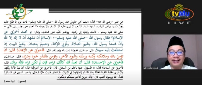 Dalam kesempatan ini, wakil rektor menjelaskan materi tersebut dengan merujuk kepada hadis popuper riwayat Imam Muslim. Hadis ini menceritakan malaikat Jibril yang bertanya kepada Rasulullah SAW tentang tiga komponen tersebut.