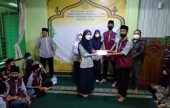 BANDUNGMU.COM — Pimpinan Ranting IPM SMP Muhammadiyah 8 Bandung dalam rangka Milad Muhammadiyah ke-109 menyelenggarakan kegiatan sosial pemberian donasi untuk panti asuhan. Sumber donasi yang diberikan dari siswa dan siswi SMP Muhammadiyah 8 Bandung berjumlah 5 juta dan akan diberikan kepada dua Panti Muhamamdiyah. Penyerahan donasi dilaksanakan pada Jumat 26 November 2021.