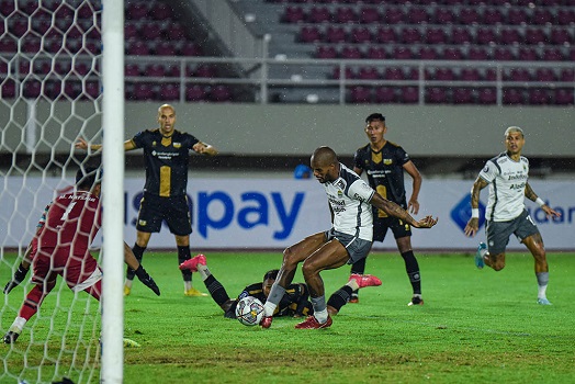 Striker Maung Bandung David da Silva saat menyamakan kedudukan ke gawang Dewa United.***(Foto: persib.co.id)