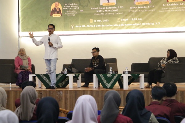 BANDUNGMU.COM, Bandung – Himpunan mahasiswa dan program studi Teknologi Pangan UM Bandung menggelar Seminar Teknologi Pangan dengan tema “Water is Life, Water is Food, Leave No One Behid” di Auditorium KH Ahmad Dahlan lantai tiga kampus ini pada Senin (16/10/2023).