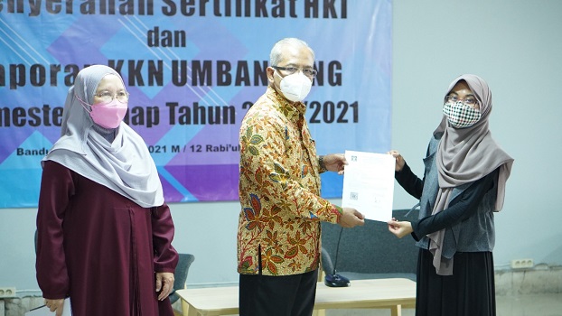 BANDUNGMU.COM, Bandung – Universitas Muhammadiyah Bandung menyerahkan sertifikat Hak Kekayaan Intelektual (HKI) kepada para mahasiswa ataupun dosen dalam acara ”Penyerahan Sertifikat HKI dan Laporan KKN UM Bandung”, Selasa (19/10/2021) lalu.