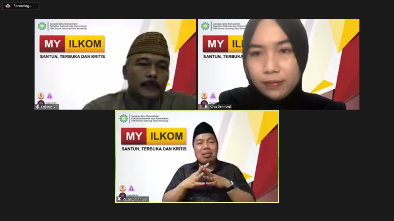 BANDUNGMU.COM — Korps Protokoler Mahasiswa Jurusan Ilmu Komunikasi Fakultas Dakwah dan Komunikasi UIN Sunan Gunung Djati Bandung kembali menggelar acara talkshow MY ILKOM edisi ke-10 yang dihadiri oleh dua orang narasumber yaitu Prof. Dr. H. Rosihon Anwar, M.Ag. selaku Wakil Rektor I Bidang Akademik UIN Sunan Gunung Djati Bandung dan Dr. H. Enjang AS., M.Ag., M.Si. selaku Wakil Dekan I Bidang Akademik Fakultas Dakwah dan Komunikasi, Jumat (26/11/2021) malam.